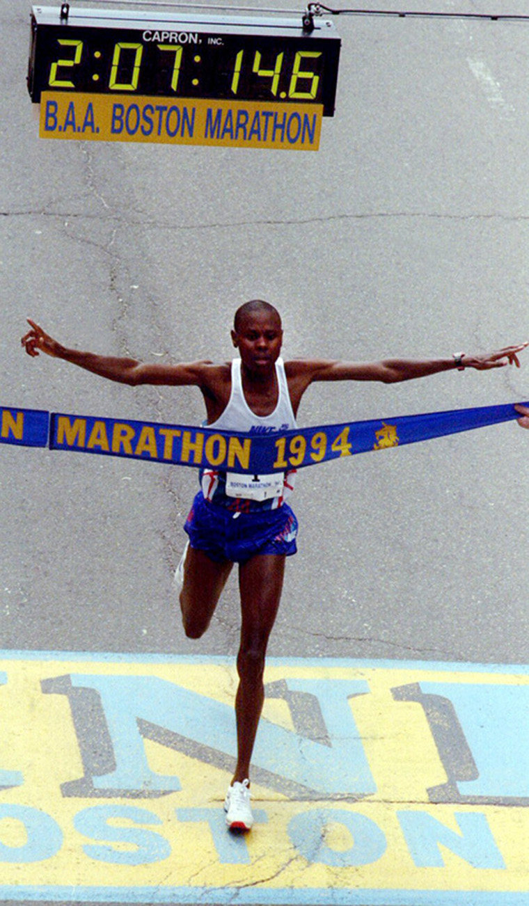 "18 APR 1994: COSMAS NDETI SPREADS HIS ARMS IN VICTORY AS HE CROSSES THE FINISH LINE TO WIN THE 1994 BOSTON MARATHON Mandatory Credit: DARRELL INGHAM/ALLSPORT." (1994): Image Collection. Web. 12 Apr. 2016.